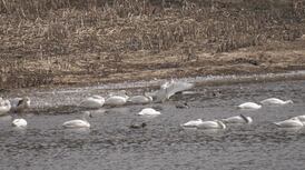 Birdwatchers in Waterloo were treated to a beautiful sight as nearly 100 tundra swans stopped at a nearby pond during their migration.