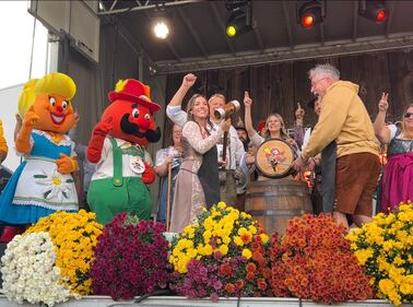kitchener-waterloo oktoberfest kw keg beer tapping Leighanne Evans taps an Oktoberfest keg in Oct. 2025. (Dan Cress/CTV News)