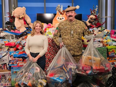 CTV News Kitchener Toy Mountain 2025 Members of The Salvation Army stopped by the CTV News Kitchener studios to collect Toy Mountain donations on Dec. 18, 2025. (Krista Simpson/CTV News)
