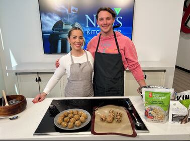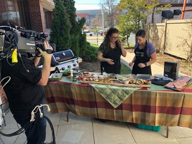 The Whole Hog Professional home economist, Emily Richards, show's CTV's Leighanne Evans how to create a recipe from 'The Whole Hog' cookbook. (CTV Kitchener)