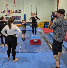 Kitchener-Waterloo Gymnastics Club ctv kitchener Leighanne Evans and Ashley Bacon visit the Kitchener-Waterloo Gymnastics Club. (Courtesy: Alicia Hutson)