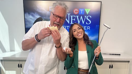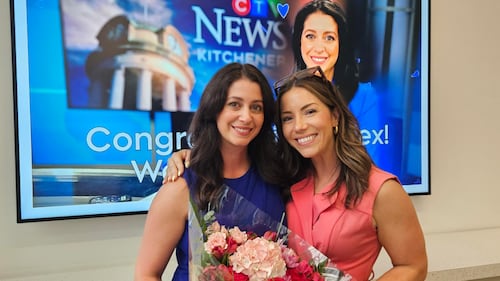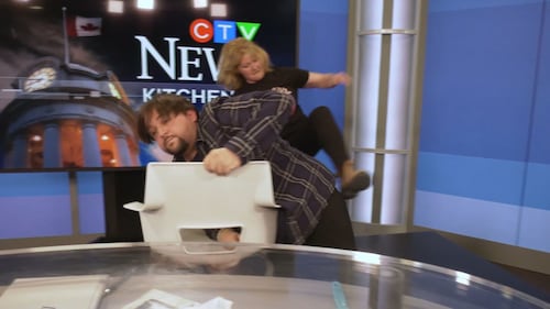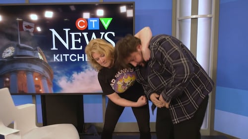 Leighanne Evans and Will Aiello at CTV News Kitchener on April 4, 2025. Leighanne Evans and Will Aiello at CTV News Kitchener on April 4, 2025.