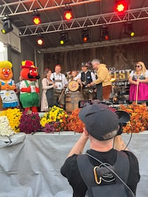 kitchener-waterloo oktoberfest kw keg beer tapping CTV cameraman Dan Lauckner captures Leighanne Evans as she taps an Oktoberfest keg in Oct. 2025. (Dan Cress/CTV News)
