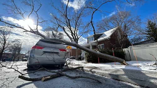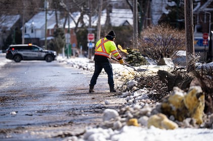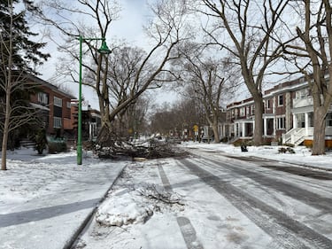 Utility workers clear debris from a fallen tree Utility workers clear debris from a fallen tree in Montreal on Tuesday, March 17, 2026, following power outages caused by high winds the previous day. THE CANADIAN PRESS/Christopher Katsarov