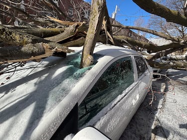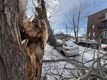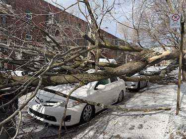 Montreal wind A tree falls on a car as strong winds envelope Montreal, Tuesday, March 17, 2026. (Scott Prouse/CTV News)