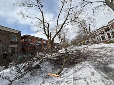 Montreal wind Fallen trees in Montreal's Outremont borough due to strong winds. (Joey Tremblay/Noovo Info)