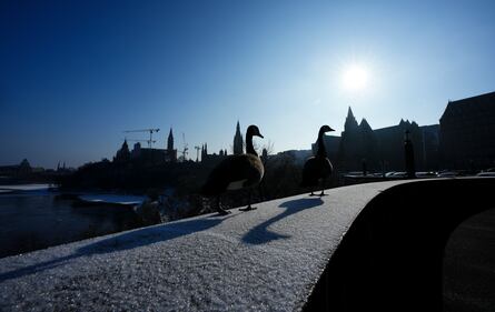 Spring in Ottawa Two Canada geese walk along a wall at the back of the Supreme Court of Canada building in Ottawa on Thursday, March 26, 2026. Parliament Hill is pictured in the background. THE CANADIAN PRESS/Sean Kilpatrick