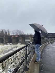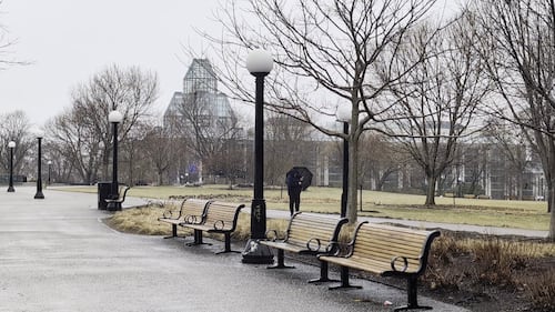 Rainy Saturday A person stands with an umbrella in Major's Hill Park with the National Gallery of Canada in the background on a rainy Saturday, April 4, 2026. (CTV News Ottawa)