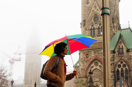 Spring in Ottawa A person makes their way through the rain in downtown Ottawa on Thursday, April 16, 2026. THE CANADIAN PRESS/Sean Kilpatrick