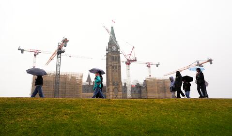Spring in Ottawa People make their way along Parliament Hill and past the Centre Block in Ottawa on Monday, April 13, 2026. THE CANADIAN PRESS/Sean Kilpatrick