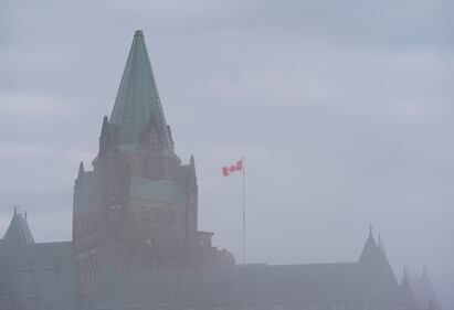 Spring in Ottawa Fog shrouds the Confederation Building on Parliament Hill in Ottawa on Monday, April 13, 2026. THE CANADIAN PRESS/Sean Kilpatrick